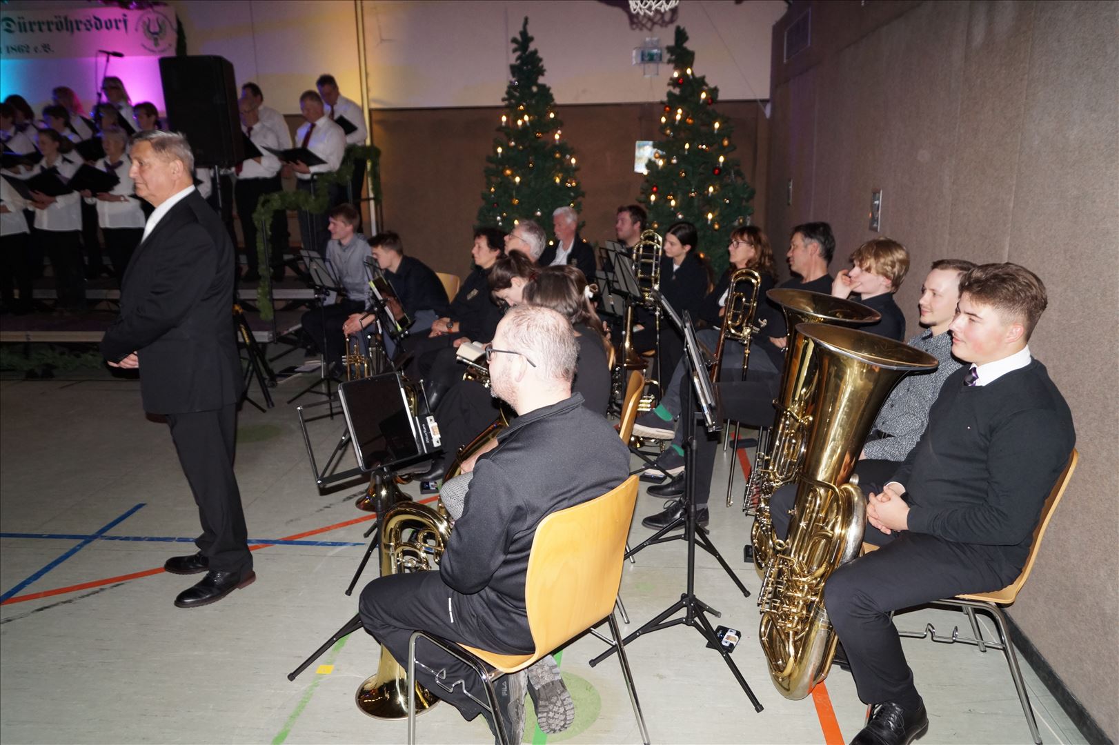 Der Posaunenchor erfreute uns mit traditionellen bekannten Stücken und mit einem Block englischer Weihnachtsweisen. Ohne den Posaunenchor wäre ein traditionelles Konzert in der Turnhalle gar nicht denkbar. Vielen herzlichen Dank an alle Bläser und den Dirigenten Ingo Gestring.