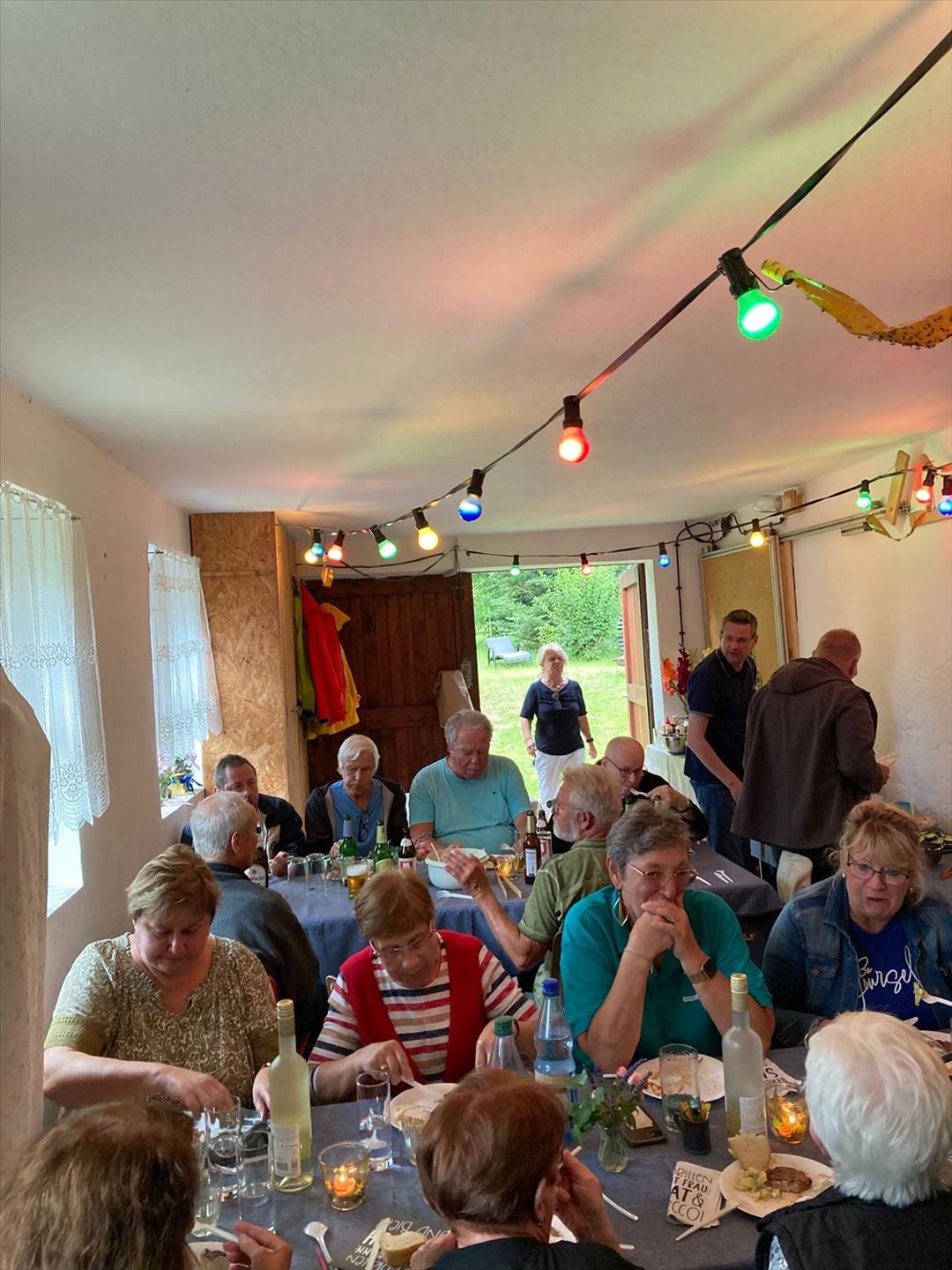 Nach einigen Jahres Pause hieß es dieses Jahr wieder, "Schwing Dich auf Dein Radel und los geht es" - In der heutigen Zeit kann man ja mit einem E-Bike die bergigen Teile leicht überlisten. Also ging es am Schloßpark Dittersbach los nach Elbersdorf, weiter auf dem Radweg zum Bahnhof Dürrröhrsdorf, Radweg nach Helmsdorf und dann nach Dobra. Endstation war die Scheune von Birgit und Werner Schöne. Birgit hatte einen runden Geburtstag und verband dieses tolle Ereignis gleich mit einem treffen der Sänger. Und der Wettergott hatte es gut mit uns gemeint, wir waren abgestiegen und die Räder untergestellt und es fing aus allen Wolken an zu regnen.