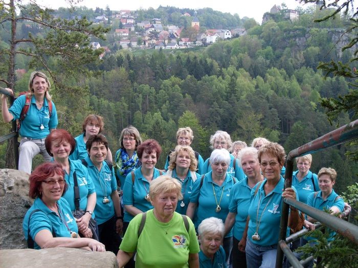 Am Samstag, den 26. April 2014 machten wir uns auf den Weg zu unserer traditionellen Wanderung anläßlich des Frauentages. Um 14.00 Uhr trafen wir uns auf dem Buswendeplatz, um von unseren Männern die erste Etappe gefahren zu werden. Wanderstart war dann in Hohburkersdorf am Gasthaus "Zur Rennstrecke". Ich glaube, 3 Frauen kannten den Weg über die Himmelschlüsselchenwiese nach Zeschnig. Alle anderen, obwohl Einheimische, waren noch nie dort gewesen. Übrigens ein sehr lehrreicher Weg. Liebevoll mit kleinen Schildern bestückt, welche Pflanzen dort blühen. Am Ende des Weges erwartete uns eine kühlende Überraschung. Achim Busch als Eisverkäufer zu sehen, war auch einmal interessant. Vielen lieben Dank den Sponsoren- den Chefs vom Hause Alfredo in Pirna -. Dann ging es weiter über die Hocksteinschänke wieder in den Wald die Teufelsschlucht hinunter zu den Wiesen vor der Polenztalschänke.