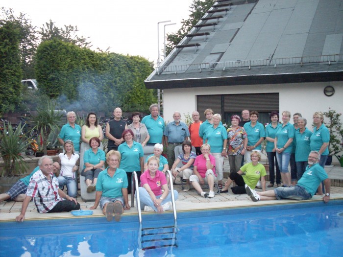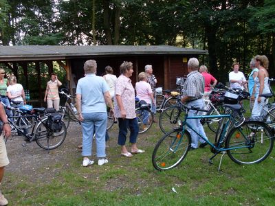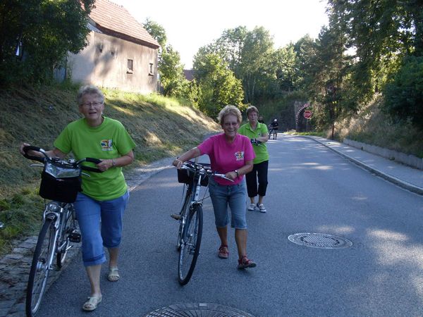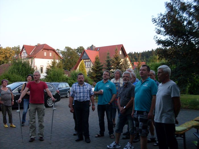Punkt 18:30 Uhr und bei einer Temperatur von fast noch 30° starteten wir unsere diesjährige Radtour. Unser erstes Etappenziel war nur eine Kurzstrecke und befand sich im Hof der Familie Zenker-Birkefeld in Dobra. Kerstin hatte uns zu einem kleinen Umtrunk, anlässlich ihres 40. Geburtstages am 13.07., eingeladen. Und bei der Hitze kam uns die leckere Bierbowle und für die Männer das kühle Bier gerade recht. Natürlich bekam Kerstin auch ihr "Geburtstagsständchen". Nachdem sich alle ein wenig von der "langen" Tour erholt hatten, ging es wieder zurück nach Dittersbach wo uns die nächste Geburtstagsrunde erwartete. Hans hatte uns zu einer kleinen Feier anlässlich seines 70. Geburtstages eingeladen. Als wir ankamen roch es schon ganz lecker nach Bratwurst und Steak. Auch für Hans sangen wir einige Lieder - diesmal unter der Leitung von Monika Meißner - worüber er sich sehr freute. Bis weit in die Abendstunden saßen wir dann noch gemütlich beisammen. Hoffen wir noch auf viele solcher Radtouren, wobei das Ziel auch gern etwas weiter weg liegen darf...