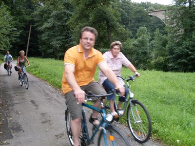 Dieses Jahr suchten wir uns bei schönstem Wetter die Tour Richtung Wünschendorf aus. Wir starteten am Buswendeplatz und es ging durch den Bruch zur Feuerwehr Elbersdorf - dann den Radweg Porschendorf-Wünschendorf entlang. In Wünschendorf gesellte sich Armin zu uns und es ging kurz über's Feld auf die Wünschendorfer Straße bis zum Dreieck und dann über Stock und Stein hinunter ins Lieblingstal über die Teufelsbrücke zurück am König Albrecht-Denkmal und der Hubertuskappelle vorbei nach Dürrröhrsdorf. Eigentlich war das Endziel das OVZ, aber aufgrund von Großreinigung mußten wir ausweichen. Und dafür danken wir unseren Feuerwehrkameraden. Ein wirklich gemütlicher Abschluß auf dem Hof der Feuerwehr läutete die Sommerferien ein. Ein großer Dank gilt den "Nicht-Radlern" für die ganze Vorbereiterei und auch den Geburtstagskindern für die Speisen und Getränke. Wolfgang und Klaus hatten wahrlich genug gegrillt, so daß sogar noch das Mittagessen am nächsten Tag für mich heraussprang. Vielen lieben Dank.